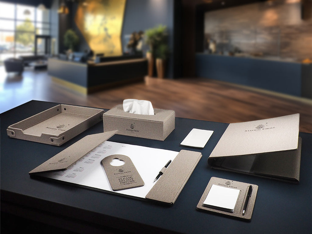 Dieses elegante Kästchen im A4-Format (23,5 × 33 × 4,5 cm) aus strapazierfähigem Stereo-Kunstleder bietet stilvolle Aufbewahrung für Dokumente, Informationsmaterial oder Gästemappen – ideal für den Einsatz in Hotels, Konferenzräumen, Gastronomie oder Empfangsbereichen.