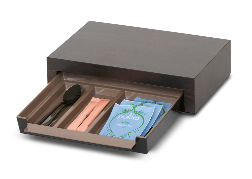 - Drei separate Fächer für Tee, Kaffee, Zucker und weitere Zutaten