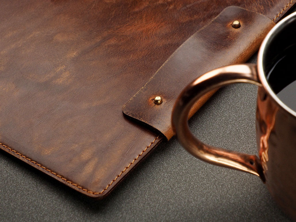 Size: (A4) 23 x 31,5 cmWeight: 0.223Materials: Saddle Leather MOQ: 20 pcs/color Holds A4 sheets Ball head rivet closure Product packed in a paper envelope