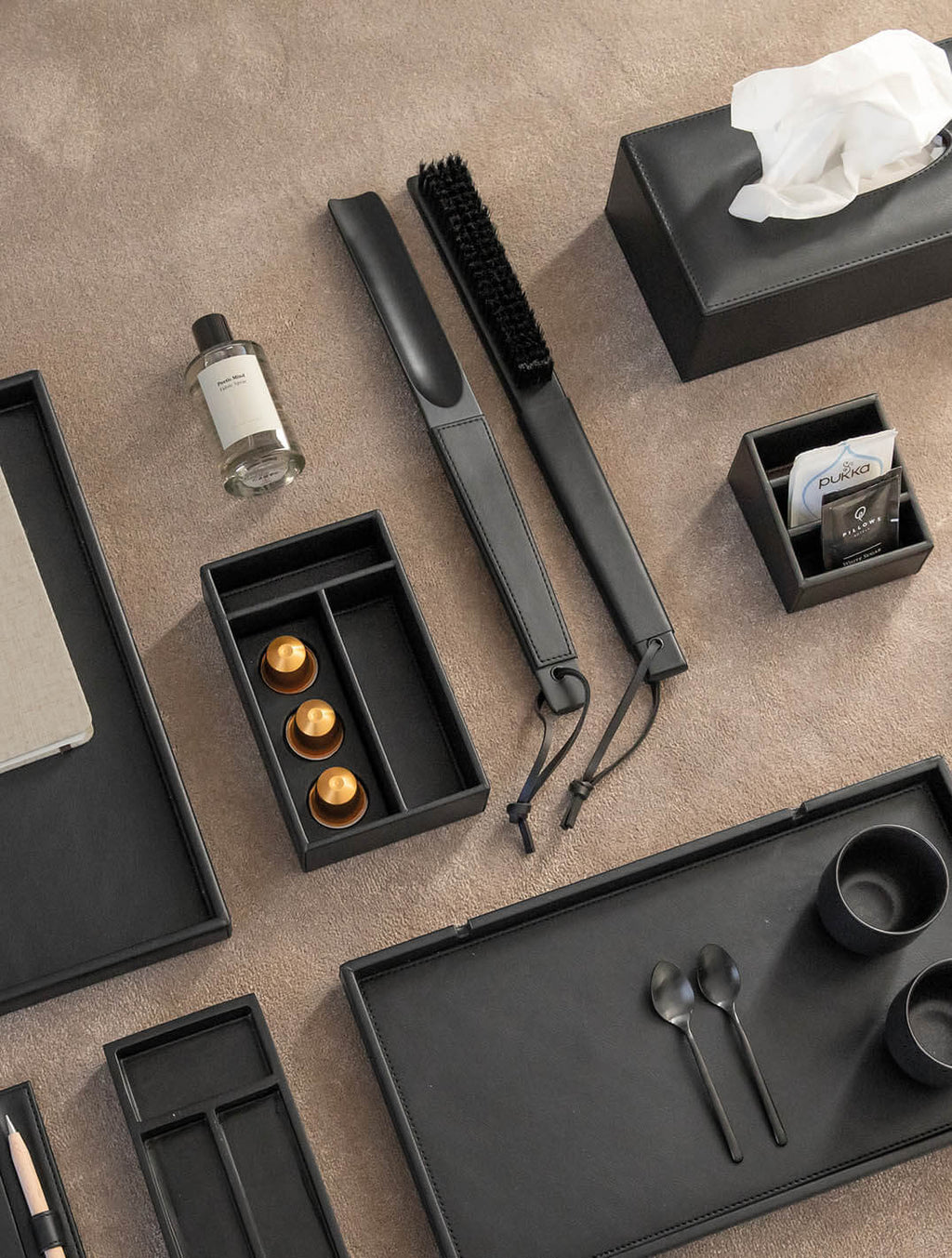 The Falster Shoe Horn in black offers a sleek, functional accessory for any wardrobe. Its long design, made with black fabric and FSC-certified wood, makes putting on shoes effortless. Fitting seamlessly into the Cebu Closet Organiser, it's a modern essential for stylish and practical living.