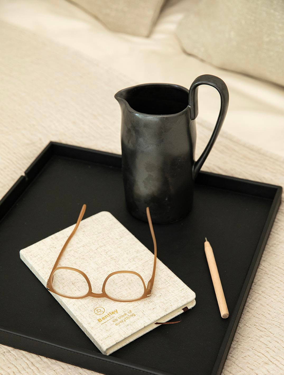Das schwarze Willkommenstablett kombiniert Luxus und Funktionalität. Mit seinem schwarzen Stoff und eleganten, quadratischen Design ist dieses Tablett die perfekte Ergänzung für jedes Hotelzimmer, Airbnb oder jede Ferienwohnung. Es eignet sich hervorragend für die Präsentation von Kaffee- und Teezubehör und sorgt gleichzeitig für eine stilvolle Atmosphäre.