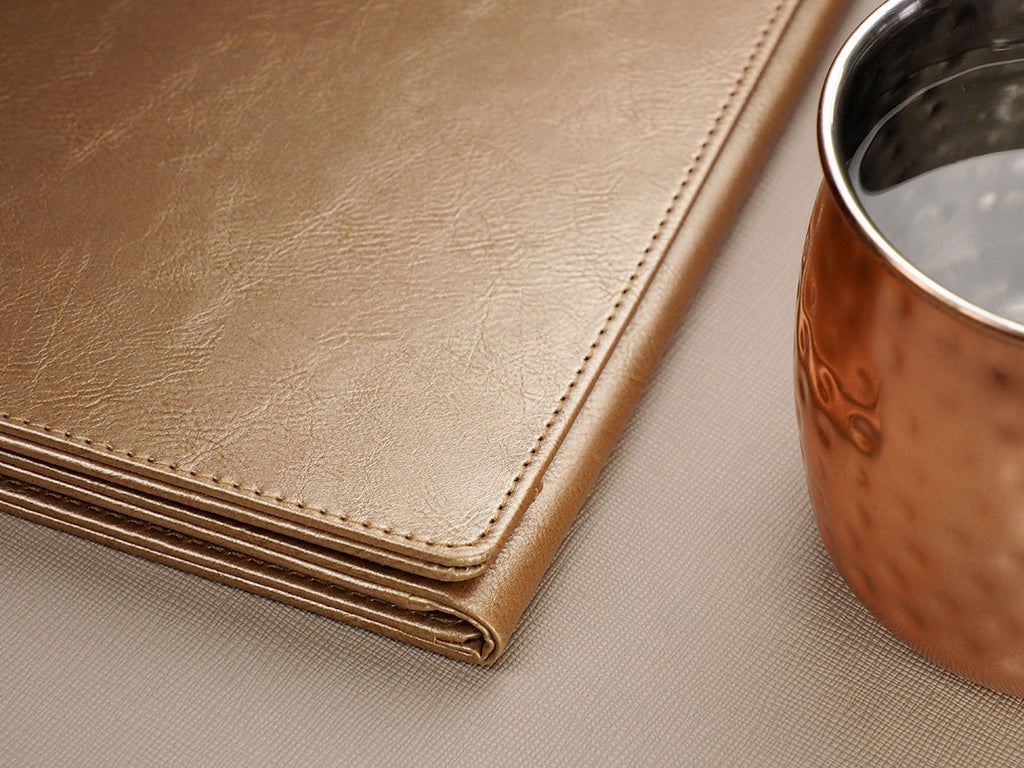 Size: (A4) 24,5 x 31,5 cmWeight: 0.727Materials: Noble PU leather MOQ: 20 pcs/color Holds A4 sheets Product packed in a paper envelope