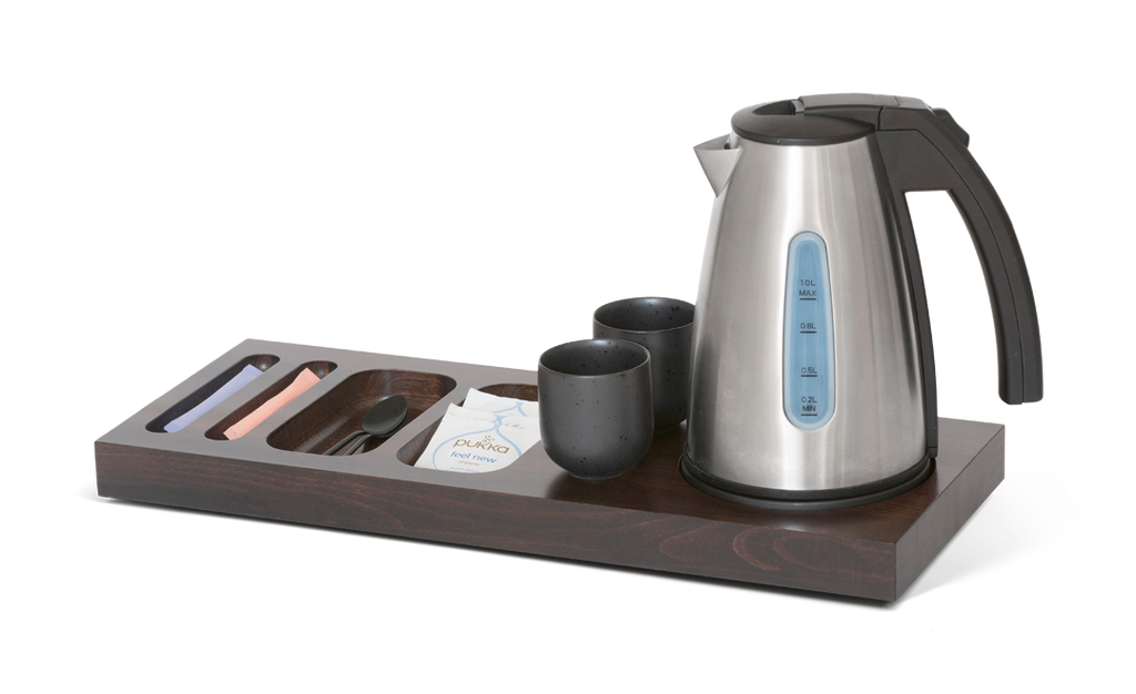 Das Xanthic Willkommenstablett in Mahagoni ist die perfekte Kombination aus Design, Haltbarkeit und Funktion für moderne Hotelzimmer. Es bietet Platz für Wasserkocher, Teebeutel und Löffel und sorgt für eine elegante Präsentation.
